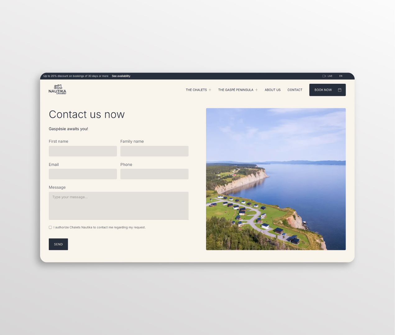 An elegant, complete contact page crafted to convert inquiries into bookings, with all the right details in one place.