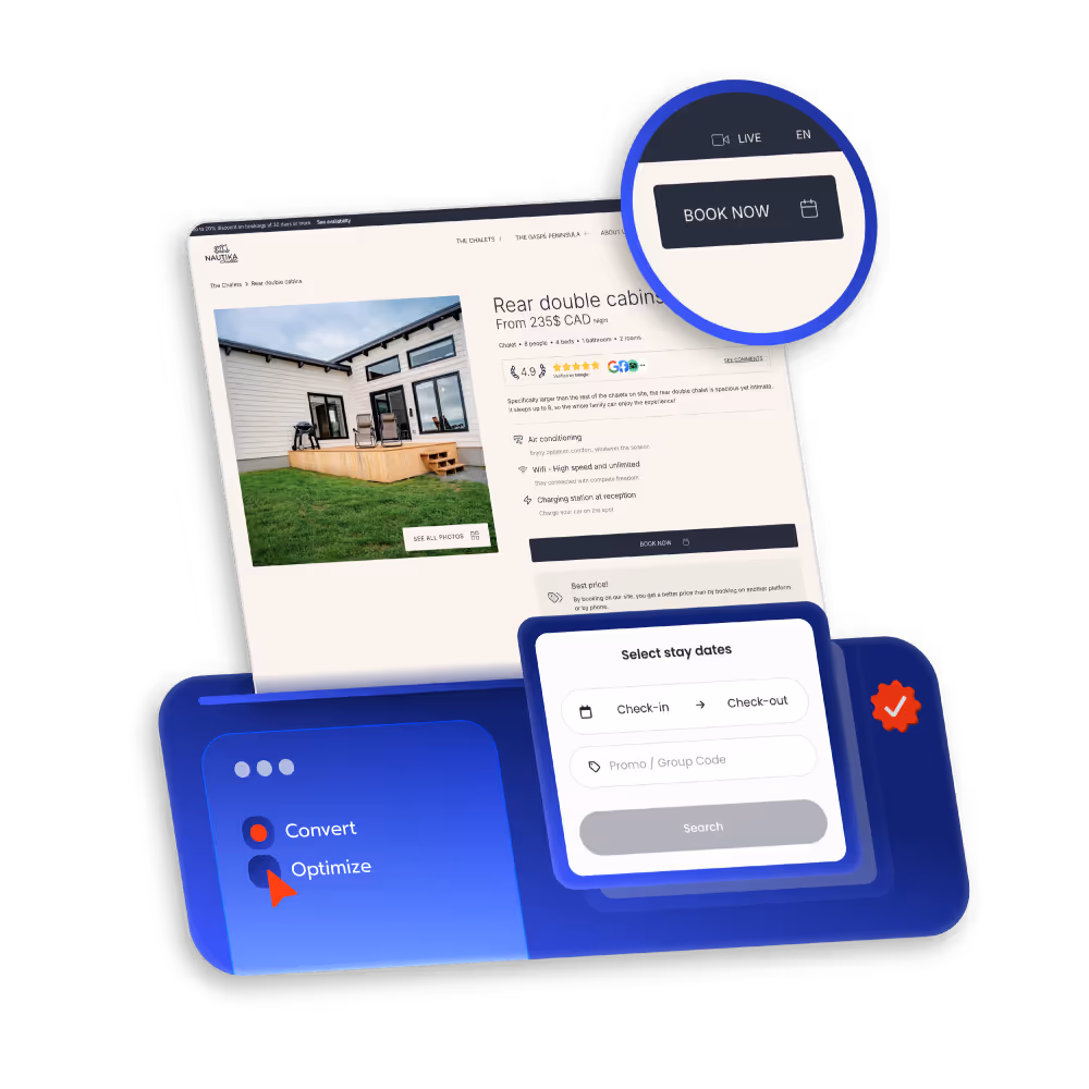 We continuously improve both SEO performance and booking performance through structured A/B testing and ongoing R&D. Strengthening rankings over time, creating brand value and converting into direct reservations more efficiently.